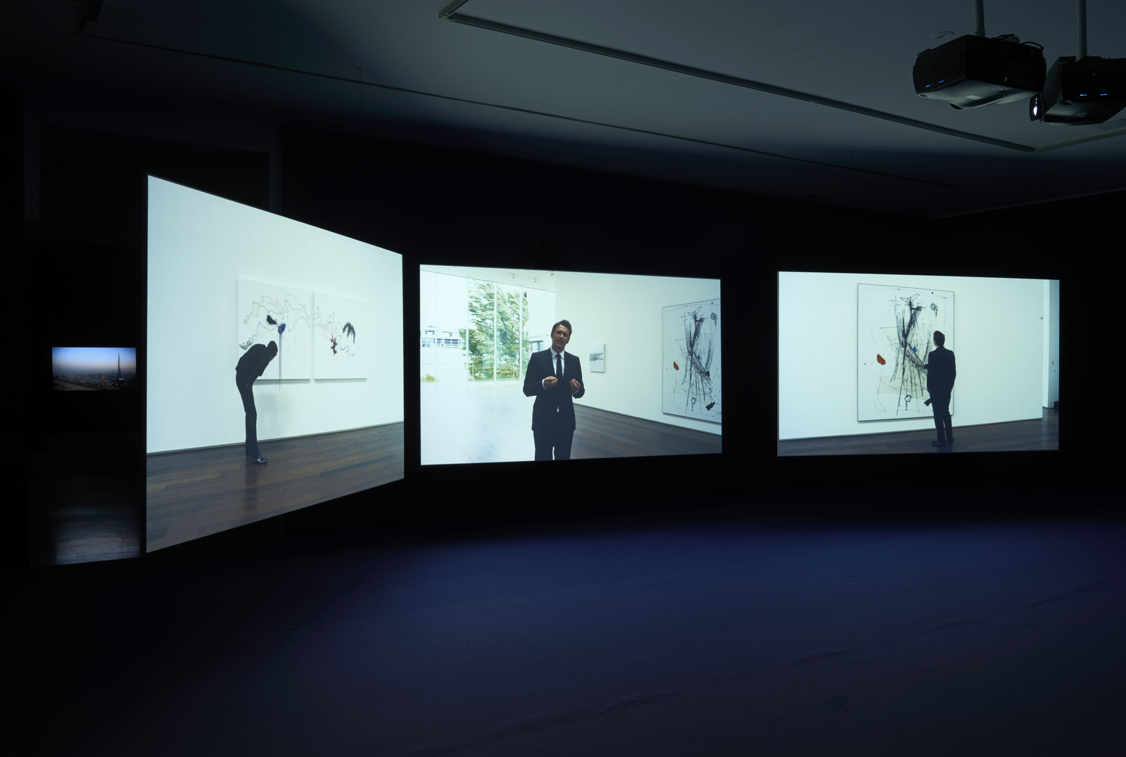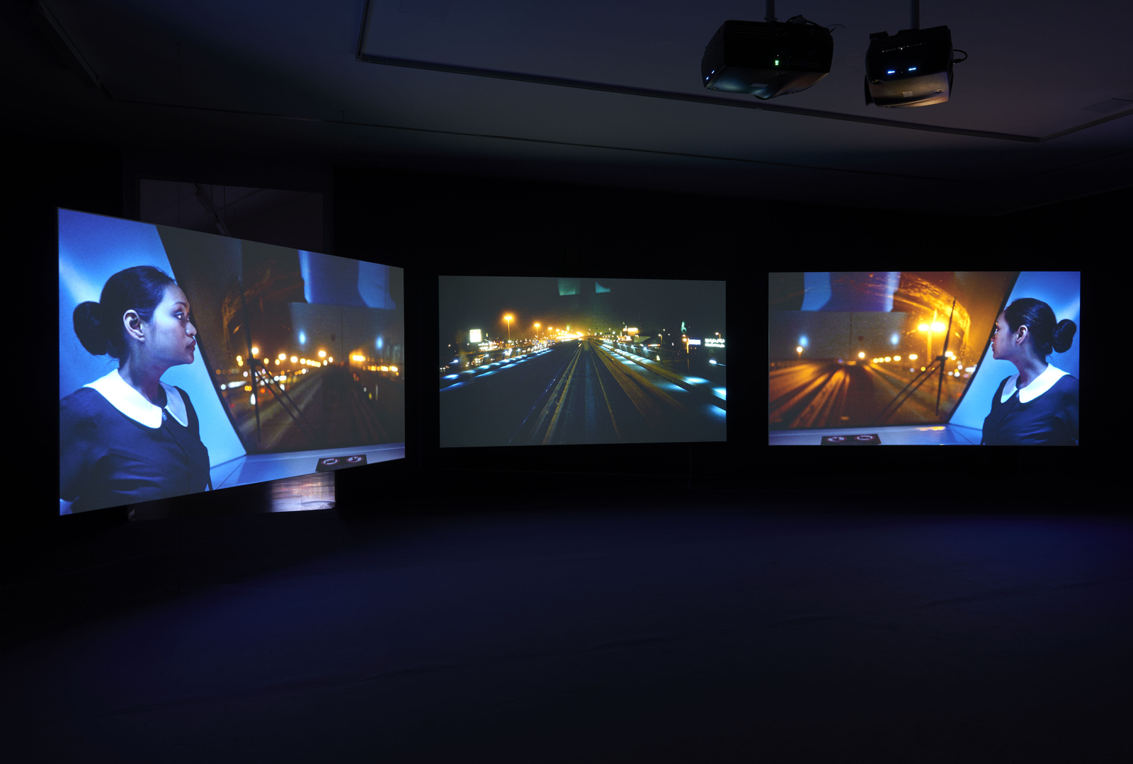 Exhibited for the first time as a three-screen work, PLAYTIME transforms the whole of Galería Helga de Alvear's space into a striking and immersive installation, specially concived for our space in Madrid. The three screen set up, montaging the work's protagonists and locations across multiple screens in reference to capital's potential to both facilitate global movement and to create its own barriers.